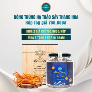 Đông Trùng Hạ Thảo khô Kim Cương Vàng 10g là thành quả của Đông Trùng Hạ Thảo tươi 150g sấy thăng hoa số lượng 3 hộp tươi mà thành. Với công nghệ Nhật Bản và quản lý chất lượng sản phẩm theo tiêu chuẩn ISO, chúng tôi đảm bảo mang đến cho bạn Đông Trùng Hạ Thảo chất lượng cao nhất.